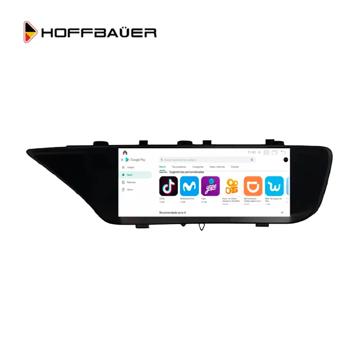 Este sistema multimedia incorpora Apple CarPlay y Android Auto de forma nativa, facilitando el acceso a navegación GPS, llamadas, mensajes y aplicaciones móviles directamente desde la pantalla. También cuenta con Google Play Store para la instalación de apps como Waze, YouTube, Netflix, Spotify, entre otras.